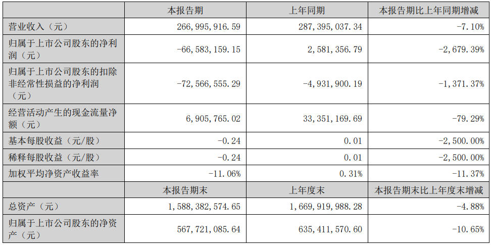股票索赔平台公义之星网(www.gyzx365.com)讯,2025年8月28日,惠伦晶体(300460)发布2025年半年度报告,公司实现营收2.67亿元,同比下降7.1%;归属净利润亏损6658万元(上年同期为258.14万元),同比由盈转亏;基本每股收益亏损0.24元。
