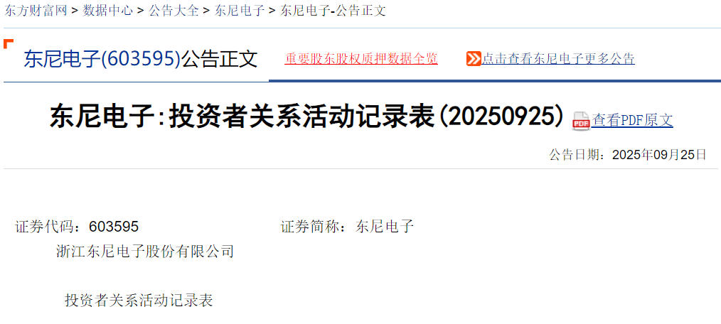股票索赔平台微信公众号“公义之星”讯,2025年9月25日,东尼电子(603595)在业绩说明会上表示:(1)无线充电隔磁材料主要供应国际大客户,已于2025年5月底开始供应其新机型的无线充电隔磁材料。(2)与宁德时代合作的主要产品为柔性线路板,目前已持续规模化交付其定点项目。(3)与立讯精密合作主要在消费电子业务,向其供应无线充电隔磁材料、超微细线材等产品。