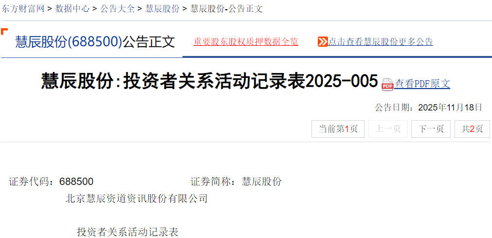 股票索赔平台微信公众号“公义之星”讯,近日,慧辰股份(688500)在业绩说明会上表示: