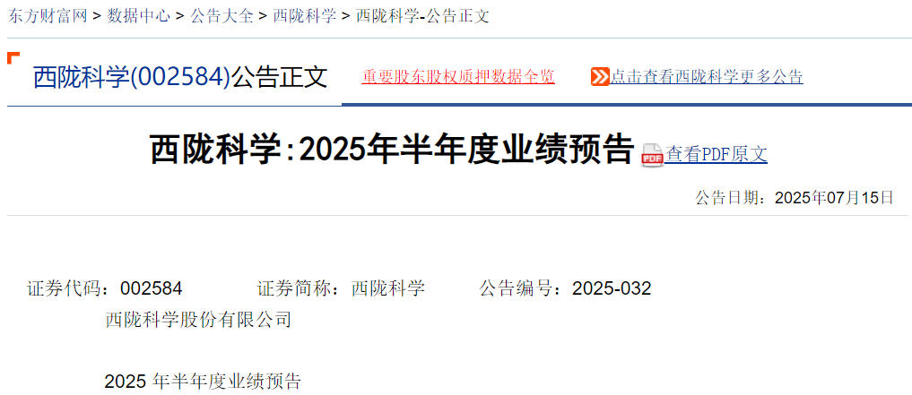 股票索赔平台微信公众号“公义之星”讯,近日,西陇科学(002584)发布的《2025 年半年度业绩预告》显示:预计2025年半年度归属净利润亏损5,000万元-9,000万元,同比由盈转亏(上年同期为盈利4,270.86万元);扣非净利润盈利3,000万元-4,400万元(上年同期为盈利4,118.32万元);基本每股收益亏损0.09元-0.15元。