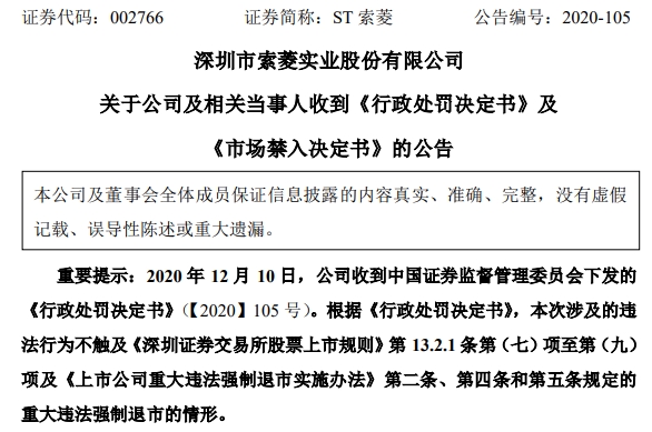 行政处罚:对*ST索菱责令改正,给予警告,并处以60万元罚。