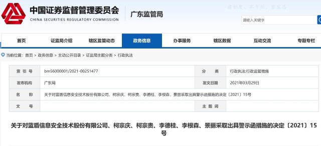 行政处罚:拟对蓝盾股份责令改正,给予警告,并处以30万元罚款。