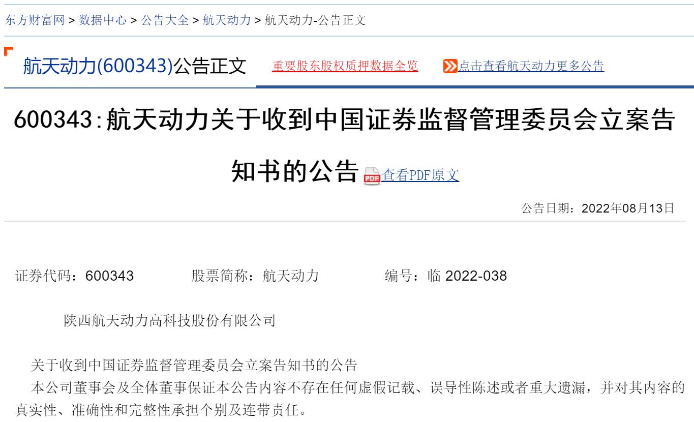 微信公众号“公义之星网”雷股资讯,2022年8月15日,航天动力(600343)开盘即跌停,全天股价被钉在10.22元/股。8月13日,航天动力披露收到中国证监会《立案告知书》(编号:证监立案字 0092022005 号),因公司涉嫌信息披露违法违规,证监会决定对公司进行调查。上海公义之星梁律师索赔(微信号:15601608866)提示:航天动力(600343)爆雷啦,依据《证券法》和最高院2022年关于证券虚假陈述侵权案最新司法解释,凡在2022年8月12日闭市后当日仍持有股票的受损投资者可在【公义之星网】输入姓名、股数关注申请赔偿投资损失。小义索赔特别提示:股票索赔的是历史法定损失金额,与目前是否持有股票没有任何关系。