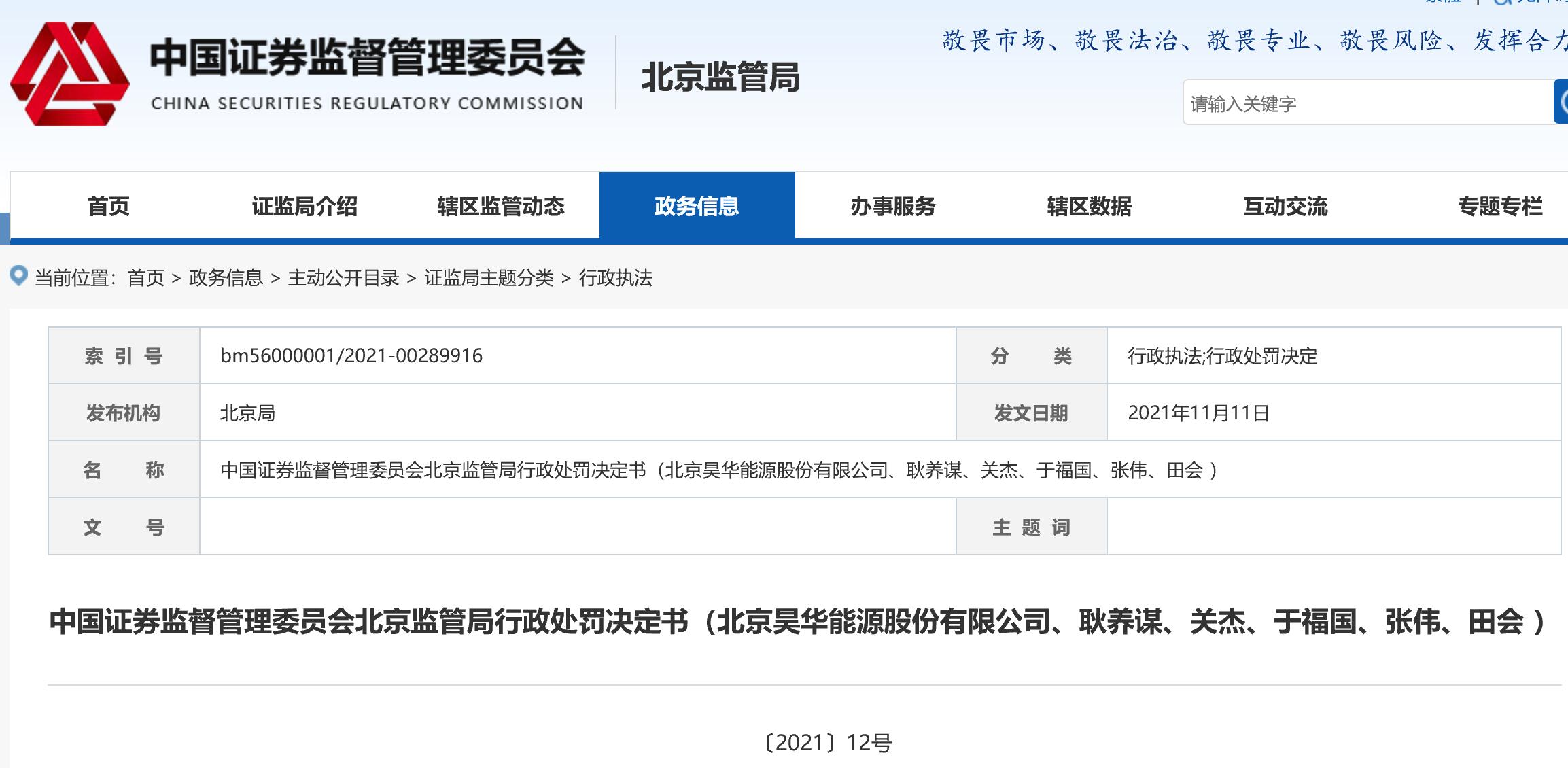 行政处罚:对昊华能源责令改正,给予警告,并处以60万元罚款。