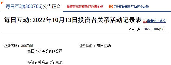 微信公众号“公义之星”网资讯,2022年10月17日,每日互动(300766)公告称,10月13日,公司接待浙商基金、财通证券等机构调研。公司副总经理、董事会秘书桑赫表示:公司凭借在数据积累、数据治理、数据应用等方面的独特优势,在笃定的规划路径(自数-治数-置数)上实现可持续发展。在回答投资者问题过程中,每日互动披露:
